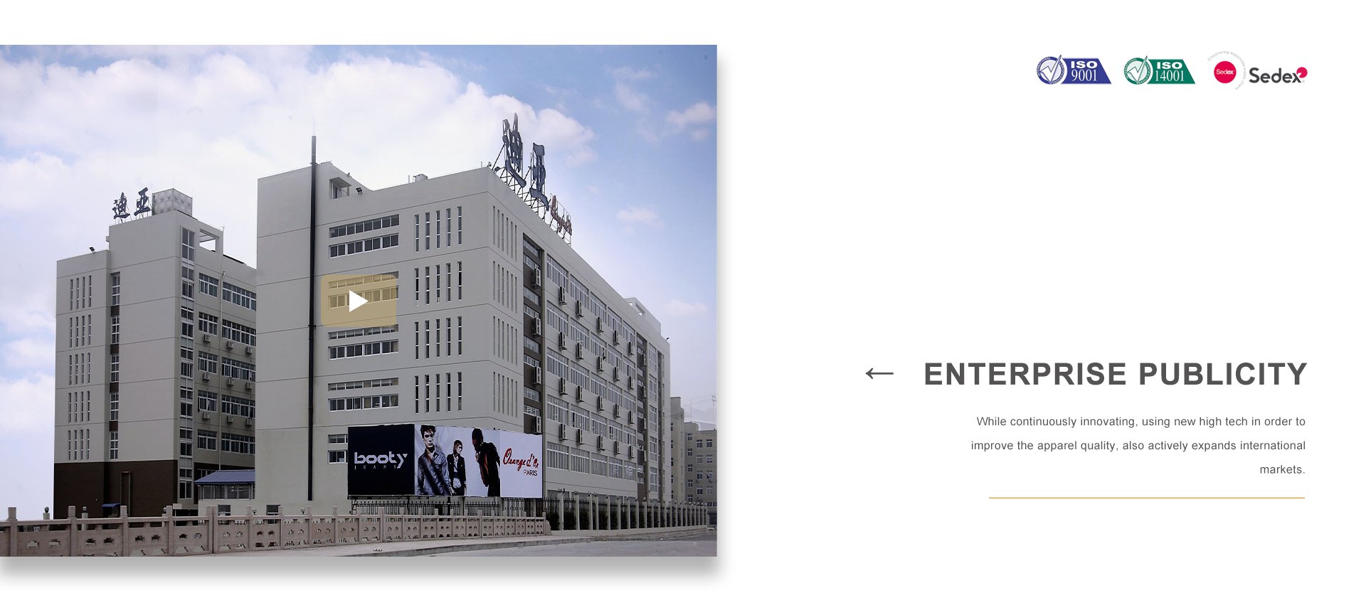 浙江迪亞服飾有限公司于1998年在世界時(shí)尚品牌之都——法國巴黎二區(qū)應(yīng)運(yùn)而生。同年,在浙江省甌海經(jīng)濟(jì)開發(fā)區(qū)東方南路28號(hào)設(shè)立服裝制造工廠。公司集服裝設(shè)計(jì)、生產(chǎn)、營銷、品牌于一體,在不斷創(chuàng)新、采用高新技術(shù)提高服飾質(zhì)量的同時(shí),積極拓展國際市場(chǎng),海外營銷部長期與LV集團(tuán)旗下的MAJE、SOEUR、BALIBARIS等國際著名品牌保持非常緊密的合作關(guān)系。