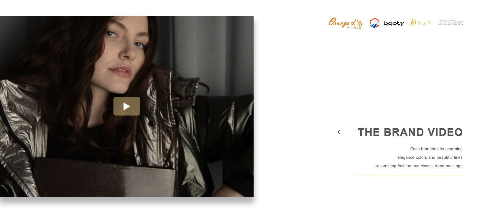 品牌建設(shè)是公司堅(jiān)持不懈的追求,我們每年都會(huì)積極參加國內(nèi)外舉辦的各大服裝展銷會(huì)。憑借著良好的質(zhì)量與信譽(yù),市場(chǎng)占有率在逐漸擴(kuò)大,產(chǎn)品遠(yuǎn)銷歐洲、美洲、亞洲等國。公司以生產(chǎn)棉衣、羽絨服、派克、大衣、夾克、運(yùn)動(dòng)休閑服飾等為主,旗下主打品牌有 ORANGE D’OR 、CLAIRVAL、BOOTY JEANS 、S&V和SASAEC,各品牌服飾均以典雅的色彩、優(yōu)美的線條、卓越的魅力吸引著都市麗人,將時(shí)尚、經(jīng)典的潮流信息予以淋漓盡致的演繹。